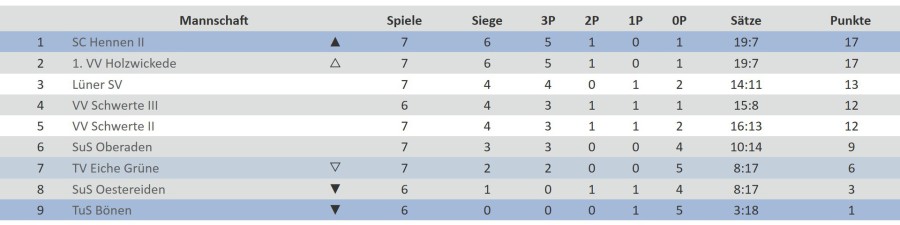 TV Eiche Grüne – SC Hennen II 0:3 (23:25, 23:25, 23:25).