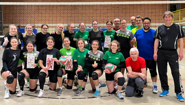 Zum Jahresausklang stand für die Volleyballabteilung am Dienstag das interne Weihnachtsturnier auf dem Programm. Beim verlängerten Trainingsabend, an dem die Spielerinnen und Spieler der Frauenteams und der Mixedgruppe teilnahmen, wurde in bunt zusammengelosten Mannschaften gespielt. In den ersten Partien mussten sich die Teams noch „finden“, danach gab es viele knapp verlaufende Spiele mit spannenden Ballwechseln zu sehen. Da dabei keine Mannschaft ungeschlagen blieb, aber auch keine ohne Sieg, durften alle zufrieden sein. Teamchefin Tabea gelang mit ihren Teams 2 der Turniersieg, über einen kleinen Preis durften sich aber alle Mitspieler/-innen freuen. Nach der Siegerehrung wurde noch in neu gemischten Mannschaften weitergespielt. Wer Pause hatte, durfte am weihnachtlichen „Buffettisch“ zuschlagen. Von Kuchen, Plätzchen, Süßigkeiten bis zum Würstchen und Getränken war fast alles vertreten, was man „aus der Hand“ essen/trinken kann. Nach dem sportlich-gemütlichen Abend verabschiedeten sich alle in die Weihnachtspause!