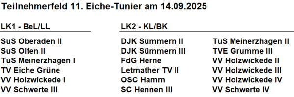 Eiche-Turnier am 14. September 2025 in der Hemberghalle:
