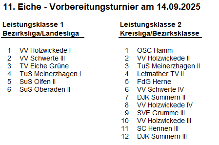 10. Eiche-Saisonvorbereitungsturnier am 08.09.2024: